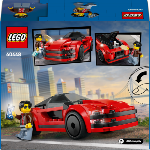 Potešte svojho malého milovníka automobilov od 5 rokov stavebnicou LEGO® City (60448) Červený športiak. Tento elegantný model superauta má parádne ráfiky, nízkoprofilové pneumatiky a kokpit s tónovaným sklom. Deti posadia minifigúrku vodiča za volant, uložia do kufra mobilný telefón a čistiace prostriedky a vyrazia na diaľnici v ústrety dobrodružstvu vo vysokej rýchlosti! Súčasťou tejto stavebnice závodného vozidla LEGO je tlačenie návod na stavanie a 3D návod v sprievodnej aplikácii LEGO Builder, ktorá obsahuje nástroje približovania a otáčania, aby si deti mohli počas stavania prezerať modely zo všetkých uhlov. Stavebnice LEGO City prinášajú parádne vozidlá, realistické stavby a zábavné postavy, ktoré inšpirujú k nápaditému hraniu bez obmedzenia. Deti môžu auto stavebnicu vozidla kombinovať s ďalšími sadami z radu LEGO City (predávajú sa samostatne) a rozšíriť si tak svet herných možností.