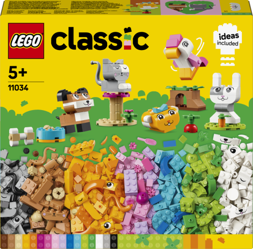 • Stavebnice maznáčikov pre deti – Malí milovníci zvierat od 5 rokov si so stavebnicou LEGO® Classic Tvoriví maznáčikovia postavia zvieratká z kociek a prispôsobia si ich podľa vlastnej fantázie• Modely zvierat z kociek – Deti si postavia mačku na škrabadle, psa smiskou a kosťou, škrečka s jablkom, králika s mrkvou a vtáka na bidielku• Inšpirujte malých staviteľov – Vďaka špeciálnym dielikom, vrátane očí a úst, a jednoduchým podrobným návodom si deti môžu upraviť a vytvoriť maznáčikov podľa vlastnej fantázie• Nekonečné tvorenie – Súčasťou je návod s 10 tipmi na stavanie, ktoré podnieti kreatívne stavanie podľa vlastnej fantázie a umožní deťom experimentovať• Zvieratká z kociek LEGO® pre deti – Stavebnica predstavuje skvelý darček k narodeninám, Vianociam alebo inej príležitosti pre deti, ktoré majú rady psy, mačky a ďalších domácich miláčikov• Určené pre malých staviteľa – Súčasťou je aj zrozumiteľný obrázkový návod na stavanie, vďaka ktorému pôjde stavanie od ruky. Pre ešte viac herných možností môžete sadu kombinovať so stavebnicami 11035, 11036 a 11037 (predávajú sa samostatne)• Rozvoj zručností pomocou kociek – Rad LEGO® Classic otvára malým staviteľom bránu do sveta ničím neobmedzeného hrania a kreatívneho sebavyjadrenia4 Zvieracie – Po zostavení meria model psa cez 5 cm na výšku a model mačky na škrabadle meria cez 7 cm na výšku