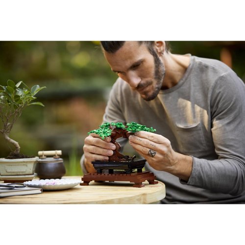 Krásny výstavný kus LEGO model bonsaje je doplnený obdĺžnikovým kvetináčom a latovým podstavcom s imitáciou dreva, takže si svoje dielo môžete hrdo vystaviť doma alebo v kancelárii. Či už sa jedná o darček k narodeninám pre niekoho z vašich blízkych, alebo iba pre vás, táto sada nepochybne každého uchváti svojou krásou. Je súčasťou botanickej LEGO kolekcie pre dospelých a obsahuje dieliky v podobe listov z rastlinného plastu, ktorý sa trvalo udržateľným spôsobom vyrába z cukrovej trstiny.