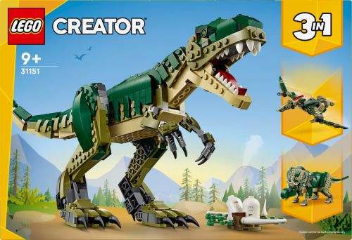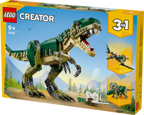 Deti od 9 rokov sa vydajú na cestu do minulosti a prehrajú si úžasné akčné scény s hračkou T-rex (31151). Model tyranosaura rexa má veľa kĺbov a dokáže pohybovať hlavou, chodidlami, chvostom, čeľusťou, nohami, pažami a dokonca aj prstami na nohách a pätách. Súčasťou stavebnice T-rexe je aj hniezdo s 2 malými dielikmi dinosaurích vajec. Spoločne s modelom dinosaura sa bude krásne vynímať na vystaviteľovi na polici alebo nočnom stolíku.