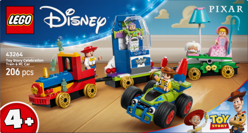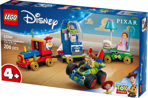 Deti od 4 rokov, ktoré milujú vozidlá a vlaky, nájdu v stavebnici LEGO® | Disney a Pixar (43264) Slávnostný vláčik a Autíčko z Príbehu hračiek všetko, čo majú rady! Naučia sa stavať pri oslave 30. výročia filmového hitu Príbeh hračiek od štúdií Disney a Pixar s lokomotívou inšpirovanou westernami, 2 alegorickými vagónmi a Autíčkom. Na vozidlách nájdete hojdačku a vesmírnu loď. Stavebnica obsahuje 4 postavy LEGO | Disney a Pixar: Woodyho, Jessie, Pastierku a Buzza Rakeťáka. Táto stavebnica poslúži ako skvelý darček pre deti: Dodá im sebavedomie a umožní vám s nimi zdieľať radosť zo stavania. 3 začiatočnícke kocky deťom pomôžu stavať bez váhania. V každom vrecúšku s kockami nájdu jednu postavičku, takže sa môžu hneď pustiť do hrania na postavy! Stavebnicu navyše je možné kombinovať s ďalšími z radu LEGO | Disney (predávajú sa samostatne). Okrem jednoduchých obrázkových návodov pre deti, ktoré sa ešte len učia čítať, nájdete v aplikácii LEGO Builder jednoduché a intuitívne staviteľské dobrodružstvo. Deti môžu približovať, otáčať modely v 3D a mnoho ďalšieho. Stavebnica obsahuje 206 dielikov.