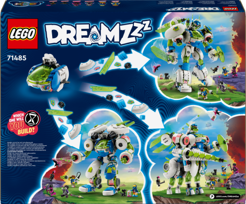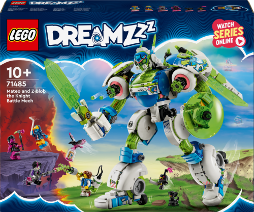 Naštartujte detskú predstavivosť so stavebnicou LEGO® DREAMZzz™ (71485) Mateo a rytiersky bojový robot Z-Flek. Táto prestaviteľná stavebnica je inšpirovaná napínavým televíznym seriálom a deti od 10 rokov si s ňou postavia hneď tri varianty robota z kociek LEGO! Malí snílkovia si užijú veľa zábavy pri stavaní raketoplánu Z-Fleka, ktorý potom prestavia na pouličného rytierskeho robota, pouličného rytierskeho kentaura alebo pouličného bojového robota. Všetky modely majú otvárací kokpit, krídla a posilňovače a množstvo úchvatných doplnkov vrátane meča, štítu, kopije a dvoch 6násobných vystreľovačov. S figúrkou krkavca a zberateľskou nádobou na sny si deti užijú ešte väčšiu porciu zábavy. Stavebnici vdychujú život 4 minifigúrky LEGO DREAMZzz: Hrdinovia Mateo a Logan a ich temní dvojníci MadTea a Dogan. Nechýbajú ani figúrky zlých prisluhovačov Sneaka a Snivela. Stavebnica robota podnecuje nápadité hranie a súčasťou je návod na stavanie vedený príbehom, s ktorým sa deti pustia do dobrodružstva a stanú sa hrdinami Sveta snov. Rozmery - Stavebnica sa skladá z 1 333 dielikov a figúrka bojového robota meria cez 35 cm na výšku