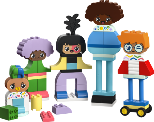 • Prispôsobiteľná hračka k rozvoju sociálnych a emočných zručností – Stavebnica LEGO® DUPLO® Mesto Zostaviteľní ľudia s veľkými emóciami deťom od 3 rokov pomáha porozumieť vlastným emóciám a tomu, ako sa ľudia cítia • Nekonečné hranie s prestavovaním – Stavebnica obsahuje 71 kociek a dielov 5 zostaviteľných postáv, 5 parochní a 10 kociek s tvárami, a prináša hodiny nápaditého hrania a kombinovania• Všestranná hračka plná aktivít – Kreatívna stavebnica deťom umožní lepšie porozumieť vlastným pocitom a pri stavaní 5 postavičiek sa malí stavitelia rozhodnú, aké budú vysoké, akú farbu bude mať ich oblečenie a ako sa budú tváriť• Neobmedzené kreatívne tvorenie – Deti od 3 rokov poskladajú postavičky podľa vlastnej fantázie a vďaka podvozku s kolieskami si vyskúša zostaviť aj postavičku na vozíčku• Skvelý nápad na darček z kociek LEGO® – Táto stavebnica pomáha deťom rozvíjať sociálne a emocionálne zručnosti a predstavuje zábavný darček k narodeninám alebo Vianociam pre deti od 3 rokov, ktoré majú rady prispôsobiteľné hračky a hranie plné možností• Bezpečné hranie – Kocky a dieliky z tejto stavebnice LEGO® DUPLO® púšťame na zem, drvíme, krútime, zahrievame a analyzujeme, aby sme zaistili, že spĺňajú prísne normy týkajúce sa bezpečnosti detí• Učenie hrou – Hračky LEGO® DUPLO® sú starostlivo navrhnuté, aby malým deťom pomohli rozvíjať sebavyjadrenia a jemné motorické schopnosti• Rozmery – Stavebnica sa skladá zo 71 dielikov a súčasťou je 5 figúrok rôznych veľkostí – meria od viac ako 13 cm až po viac ako 26 cm na výšku