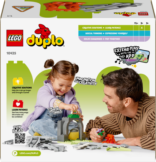 S rozširujúcou sadou Železničný tunel a koľaje z radu LEGO® DUPLO deti od 2 rokov zdokonalia dôležité zručnosti Súčasťou tejto kreatívnej stavebnice je 10 dielikov koľají, 1 akčná kocka, dvojitá výhybka, tunel a komín Táto rozširujúca sada vykúzli úsmev na tvári stavebnicami vláčikov z radu LEGO® DUPLO (predávajú sa samostatne)