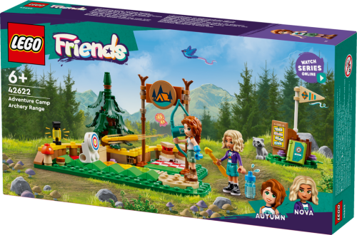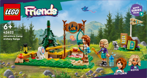 „Součástí stavebnice LEGO® Friends (42622) Lukostřelnice na dobrodružném táboře pro děti od 6 let jsou minipanenky Autumn a Novy, mýval a spousta sportovních doplňků. Holky i kluci s touto napínavou stavebnicí můžou trénovat střelbu na terč, protože luk skutečně vystřeluje šípy. Sledujte, jak se terč otočí, když ho zasáhne šíp! K dispozici je barevně značená stupnice obtížnosti, takže děti mohou terč posunovat dál a zkoušet náročnější výzvy. Malí dobrodruzi se s touto stavebnicí lukostřelnice pustí do vyprávění nekonečných příběhů. Figurka Autumn má hned 2 různé tváře, aby mohla měnit výraz, když míří. Nova dostane odznak na lukostřelbu do svého památníčku z tábora. Autumn a Nova si pak odpočinou a pochutnají si na sendvičích. Dávejte si ale pozor na drzého mývala, který by si rád přivlastnil jejich oběd! Tato stavebnice představuje skvělý dárek pro deti a je kompatibilný s aplikáciou LEGO Builder, ktorá prináša jednoduché a intuitívne staviteľské dobrodružstvo. V aplikácii môžu deti približovať a otáčať modely v 3D, ukladať svoje stavebnice a sledovať svoj postup.“