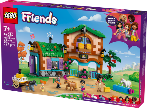 Naklusajte priamo do hrania s touto stavebnicou pre deti od 7 rokov, ktoré milujú kreatívne hranie na priateľstvo a rozprávanie príbehov Inšpirujte malých staviteľov k ďalším kreatívnym nápadom so stavebnicami (predávajú sa samostatne) Tiež online seriálom LEGO® Friends: Nová kapitola, v ktorom sa deti zoznámia s postavami Friends si deti užijú rôzne okamihy priateľstva a veľa príležitostí na vymýšľanie vlastných nápaditých príbehov Stavebnica sa skladá zo 727 dielikov a model ranča s poníkmi meria cez 17 cm na výšku, 33 cm na šírku a 14 cm do hĺbky