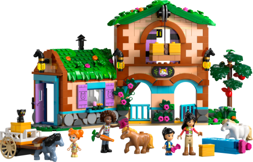 Stavebnica LEGO® Friends Ranč s poníkmi a stajňou pre deti obsahuje zostaviteľnú stajňu, vozík, výťah na seno a ďalšie prvky, ktoré potešia dievčatá a chlapcov od 7 rokov Súčasťou stavebnice je výťah na seno, ktorý zdvíha a spúšťa balíky sena, aby ich deti mohli ľahko prepravovať k poníkom alebo do seníka minibábiky Aliyi a Liann, mikrobábiky Victorie a Elly, figúrku mačky, 3 figúrky poníkov a veľa doplnkov pre kreatívne hranie Táto zábavná stavebnica obsahuje stajňu, obývací priestor a rad doplnkov, vrátane stuh, kief, rúry, sušienok, černíc, mrkvy, vonkajších lucerien v tvare