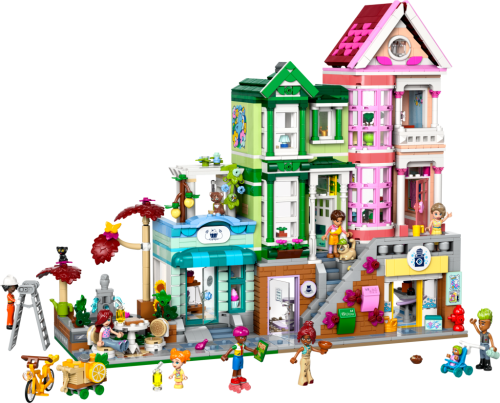 Stavebnice Apartmány a obchody v mestečku Heartlake pre dievčatá a chlapcov od 12 rokov obsahuje 3 farebné domy LEGO®, pekáreň, keramický ateliér a práčovňu Tátostavebnica je plná kreatívnych detailov, takže deti sa môžu hrať a vymýšľať rôzne príbehy, než sú model veľa miestností a doplnkov Na ulici nájdete pekáreň, keramický ateliér s otočným hrnčiarskym kruhom a práčovňu s rolovacími dverami a 2 funkčnými práčkami Súčasťou je 7 minibábik, mikrobábika, figúrka bábätka, 3 figúrky mačiek a rad doplnkov pre kreatívne hranie
