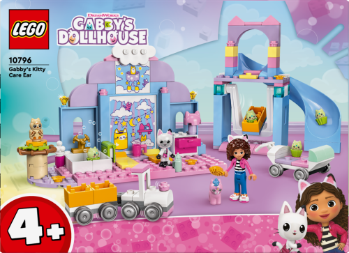 „Stavebnica Gábi a mačacie jasličky (10796) je hračka podporujúca rozvoj zručností pre fanúšikov seriálu Gábinin kúzelný domček z dielne štúdia DreamWorks Animation od 4 rokov. Táto hračka pre chlapcov aj dievčatá predstavuje skvelý spôsob, ako deti môžu pri zábavnej hre na postavy prehĺbiť sebaistotu, sústredenosť a schopnosť riešiť problémy! Hľadáte darček pre malé deti, ktoré sa rady starajú o zvieratká? Táto zábavná stavebnica domčeka pre bábiky je to pravé! Súčasťou je minibábika Gábi a figúrka Pandy Ťapky, Mačkorožčite, Sovátka a 4 Malých Košíčkov. Nechýba hojdačka, šmykľavka, hračka vláčika a 4miestny kočík pre košíčky. V stavebnici tiež nájdete vaňu s doplnkami vrátane šampónu a kefy, fľaštičku, hrnček, rozprávkovú knižku a niekoľko pohodlných postieľok (vrátane hniezda pre Sviatko), v ktorých si zvieratká oddýchnu. Súčasťou modelu je aj začiatočnícka kocka, s ktorou sa deti ľahko pustia do hrania, a intuitívny návod v podobe zábavného obrázkového príbehu.“