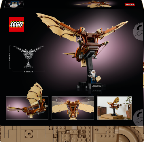 Ponorte sa do čias evolúcie leteckých vynálezov so stavebnicou LEGO® Icons (10363) Lietajúci stroj Leonarda da Vinciho pre dospelých, ktorý predstavuje nádherný výstavný kúsok domov alebo do kancelárie. Postavte si da Vinciho vizionársku ornitoptéru s otvoreným drakom lietadla a krídlami potiahnutými textíliou, ktoré sú poháňané viditeľnými povrazmi, pántami a kladkami. Tento úchvatný model obsahuje podstavec na vystavenie a minifigúrku Leonarda da Vinciho, ktorá drží brko a skicu. Využite túto stavebnicu na maximum s aplikáciou LEGO Builder, v ktorej si môžete počas stavania približovať, otáčať a prezerať modely v 3D. Aplikácia vám taktiež umožňuje spolupracovať ako tím, sledovať svoj pokrok a preskúmavať a ukladať si ďalšie stavebnice. Urobte si čas na relaxáciu pri premyslenom staviteľskom projekte so zberateľskou stavebnicou ornitoptéry LEGO, ktorá predstavuje skvelý nápad tip na darček k Vianociam alebo narodeninám pre milovníkov vedy a histórie. Nenechajte si ujsť inšpiratívnu ponuku kreatívnych stavebníc LEGO navrhnutých špeciálne pre dospelých.