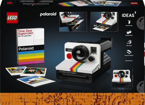 • Zberateľská stavebnica LEGO® ako nostalgický darček pre fotografov – Postavte si vlastný model slávneho fotoaparátu Polaroid OneStep SX-70 Camera (21345) z radu LEGO pre dospelých• Darček pre milovníkov fotoaparátov – Model sa chváli radom dizajnových detailov, ako je hľadáčik, koliesko pre kompenzáciu expozície, samolepka „Polaroid Land Camera“, OneStep“ a „1000“• Zostaviteľný balíček filmu Time-Zero Supercolor SX-70 Land Film – V krabici nechýbajú 3 ilustrované „fotografie“ vynálezcu Polaroidu Edwina H. Landa, domu LEGO® House a sestry návrhára z radov fanúšikov, ktorý tento model inšpiroval• Funguje ako skutočný vintage model fotoaparátu Polaroid – Vsuňte jednu z „fotografií“ do fotoaparátu a stlačte červené tlačidlo spúšte, ktoré fotku vysunie• Tip na darček pre fanúšikov fotografovania – Urobte radosť sami sebe alebo stavebnicu LEGO® pre dospelých darujte niekomu zo svojich blízkych. Hodí sa ako darček k narodeninám aj ako prekvapenie• Podrobný návod – Súčasťou je brožúrka s rozhovormi s dizajnérom z radov fanúšikov as dizajnérmi LEGO®. Nechýbajú ani pokyny, ktoré vás prevedú jednotlivými krokmi kreatívneho staviteľského zážitku • Jasná voľba pre fanúšikov stavebníc LEGO® – Táto zberateľská stavebnica pre dospelých je súčasťou rozmanitého radu modelov LEGO Ideas, ktoré vytvorili a vybrali sami fanúšikovia. S výrobou potom pomohla spoločnosť LEGO Group• Na výstavku s hrdosťou – Model fotoaparátu Polaroid sa skladá z 516 dielikov a meria cez 9 cm na výšku, 9 cm na šírku a 15 cm do hĺbky