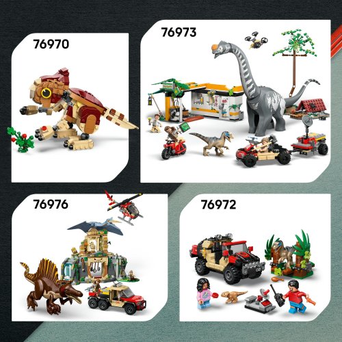 Aplikácia LEGO Builder prevedie malé deti intuitívnym staviteľským dobrodružstvom, umožní im približovať a otáčať modely v 3D, ukladať stavebnice a sledovať postup stavania. Táto nápaditá stavebnica predstavuje zábavný dinosaurí darček na Vianoce alebo narodeniny a skvelý spôsob, ako mladším deťom, ktoré milujú dobrodružstvo a dinosaurami, predstaviť svet filmov Jurassic World. Stavebnicu je možné kombinovať aj s ďalšími stavebnicami LEGO Jurassic World (predávajú sa samostatne) pre ešte väčšiu porciu zábavy. Stavebnica sa skladá zo 199 dielikov.