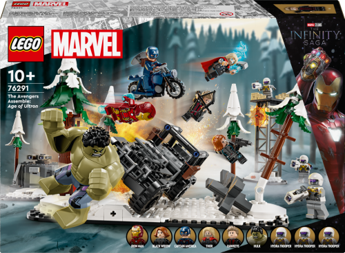 Stavebnica Avengers – Táto zostaviteľná superhrdinská stavebnica predstavuje epickú bitku z filmu Avengers: Age of Ultron od štúdia Marvel s radom minifigúrok a autentických prvkov LEGO® Marvel
