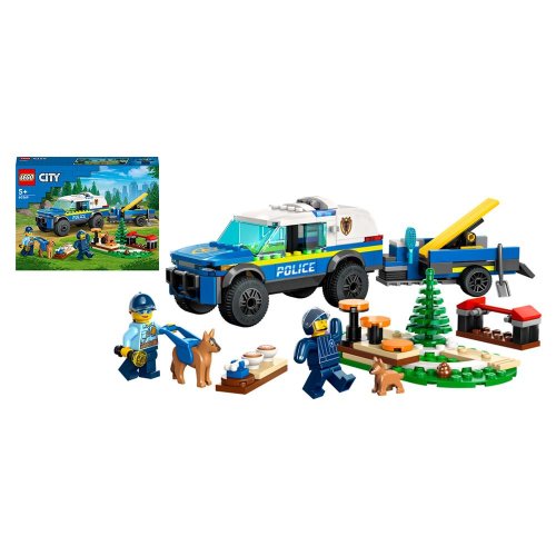 Cvičisko policajných psov od LEGO City pre deti od 5 rokov s niekoľkými modelmi Obsahuje model terénneho vozidla, príves, cvičisko, 2 minifigúrky a 2 figúrky psíkov Cvičisko obsahuje hojdačku, tyč na preskoky a stúpadlá Zábavný darček LEGO k narodeninám, Vianociam alebo akékoľvek iné vozidlo meria cez 7 cm na výšku, 14 cm na dĺžku a 6 cm na šírku Doplnky pre minifigúrky zahŕňajú kefu, baterku a lopatu Súčasťou stavebnice je tlačený návod a interaktívna aplikácia LEGO Builder Deti budú pri hraní rozvíjať kreativitu, fyzické zručnosti a získajú sebavedomie