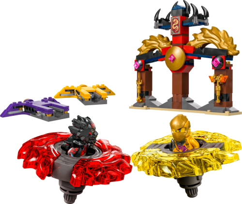 Dievčatá a chalani od 6 rokov si so stavebnicou Bojový balíček dračieho Spinjitzu pripomenú akčné scény z 3. radu televízneho seriálu NINJAGO Dračie povstanie Deti umiestnia Arinov a Rasov dračie Spinjitzu spinner do vypaľovacích zariadení vylepší svoje spinnery špeciálnymi zlatými prvkami, ktoré vyhrajú zasiahnutím a zbúraním bojovej arény Táto stavebnica pre deti obsahuje nindžu Arina vyzbrojeného mečom a zlotrilého Rase s mečom