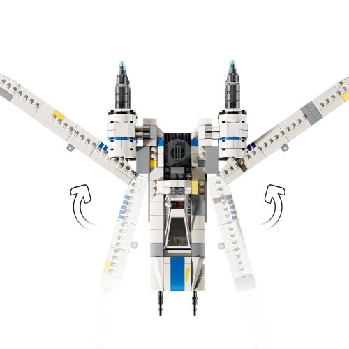 Pripomeňte si hrdinské dobrodružstvá z 2. radu seriálu Star Wars: Andor s modelom Povstalecké stíhačky U-wing z kociek LEGO® Minifigúrky LEGO Cassian Andor a Dedra Meero s blasterovými pištoľami, minifigúrka LEGO taktického agenta ISB s Táto stíhačka LEGO® Star Wars má funkciu výsuvných krídiel, vďaka ktorej je možné krídla prepnúť z pristávacieho režimu do letového režimu v tvare „V“ U-wing má kokpit so strieškou ovládanou páčkou, otvárací priestor pre cestujúcich a náklad a 2 pružinové vystreľovače