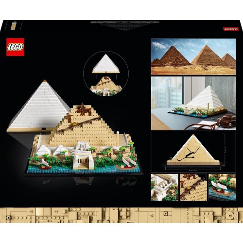Podniknite nápaditú výpravu do 26. storočia pred nl a zažite na vlastnej koži stavbu jedného zo siedmich starovekých divov sveta s modelom Veľká pyramída v Gíze (21058) od LEGO® Architecture. Zostavte si nádherný, detailný prierezový model Veľkej pyramídy a odhaľte hlavné chodby a komory aj systém, vďaka ktorému mohlo byť možné prepravovať obrovské kamenné bloky. Predstavte si, ako táto oblasť v blízkosti Nílu vyzerala v dobách staroveku, a dotvorte dielo pomocou 2 menších pyramíd, 2 pohrebných chrámov, sfíng, obelisku a ďalších autentických prvkov.