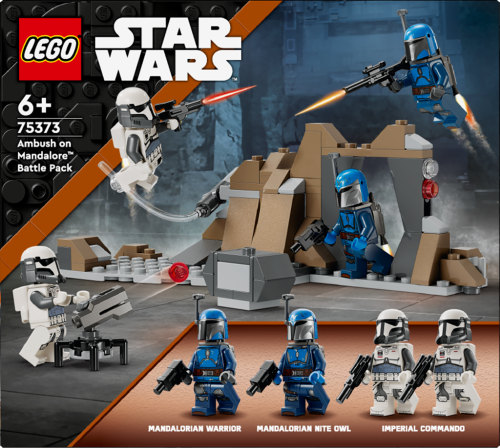 Deti si pripomenú veľkolepé bitky s jetpackmi so stavebnicou Bojový balíček prepadnutia na Mandaloru (75373) z radu LEGO® Star Wars: The Mandalorian. Táto fantastická stavebnica predstavuje skvelý darček pre kreatívnych chlapcov, dievčatá a fanúšikov od 6 rokov, ktorí s ňou znova prežijú akčné scény z 3. radu seriálu Star Wars: Mandalorian. Nájdu v nej 4 zberateľské minifigúrky LEGO: Mandaloriánsku Sovu, mandaloriánskeho bojovníka a 2 imperiálnymi komandami. Nechýba ani rad doplnkov LEGO, vrátane blasterov, blasterových pištolí a jetpackov, a navyše priehľadný dielik s rukoväťou, vďaka ktorému minifigúrka LEGO vie „lietať“. Zostaviteľný skalný útvar s jaskyňou a vystreľovacím delom malým staviteľom prináša ešte viac herných možností. V aplikácii LEGO Builder nájdete digitálny návod a nástroje na približovanie a otáčanie modelov, ktoré deťom prinesú ešte lepší staviteľský zážitok. Skalu/jaskyňu je možné prepojiť s mandaloriánskou základňou v balíčku Súboj Paze Vizsly a Moffa Gideona (75386, predáva sa samostatne) pre ešte viac herných možností.
