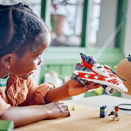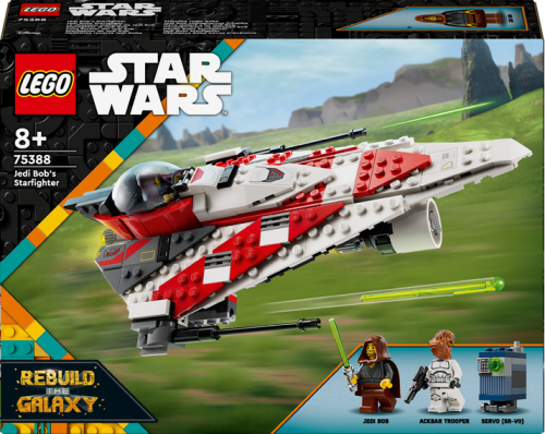 Zoznámte deti s obľúbenou tajomnou postavou zo stavebnice LEGO® Star Wars™ z roku 2002 vďaka sade Stíhačka Jedie Boba (75388). Táto stavebnica LEGO Star Wars, predstavuje skvelý narodeninový darček pre chlapcov, dievčatá a fanúšikov od 8 rokov. Súčasťou je stíhačka s otváracím kokpitom, 2 pružinovými vystreľovačmi a zaťahovacím podvozkom. Pusťte sa do strhujúceho dobrodružstva s 2 minifigúrkami LEGO Star Wars: Jediom Bobom a vojakom Ackbarom, ak tomu navyše figúrkou LEGO droida Serva (SR-V0) zo špeciálu LEGO Star Wars: Rebuild the Galaxy od Disney+. Ešte viac zábavy na vás čaká vďaka doplnkov, ako je svetelný meč Jedie Boba, ktorý je možné pripnúť k základni vesmírnej lode z kociek, krabice modrého mlieka a banán, ktoré je možné uložiť do nákladového priestoru. Táto stavebnica sa skvele hodí k stavebniciam Temný Falcon (75389) a Stíhačka TIE a X-wing – kombinovaná stavebnica (75393) (predávajú sa samostatne), ktoré obsahujú aj vozidlá a postavy zo špeciálu LEGO Star Wars: Rebuild The Galaxy.