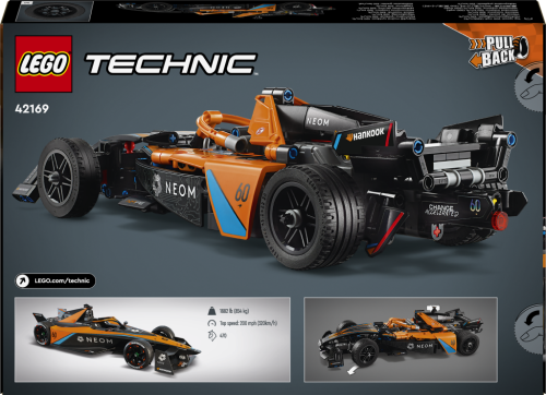• Vozidlo NEOM McLaren Formula E s naťahovacím motorom – S touto stavebnicou pre deti od 9 rokov si malí milovníci pretekov postavia vlastné pretekárske auto s naťahovacím motorom• Zbesila zábava – Model vozidla McLaren sa pýši dvojitou naťahovacou funkciou, pomocou ktorej ho deti vyšlú do akcie pri hre kreatívneho hrania so stavebnicou LEGO® Technic NEOM McLaren Formula E Race Car a pomocou funkcie riadenia nasmerujú kolesá vozidla• Pretekárske auto pre deti od 9 rokov – Tento model je úchvatný darček pre deti, ktoré majú rady vozidlá a stavebnice• Úvod do sveta techniky – Modely LEGO® Technic ponúkajú realistické mechanizmy a funkcie Intuitívny návod na stavanie – Aplikácia LEGO® Builder malých staviteľov prevedie tvorivým dobrodružstvom a ponúkne im nástroje na približovanie a otáčanie 3D modelov, ukladanie stavebníc a sledovanie postupu• Rozmery – Stavebnica sa skladá zo 452 dielikov a model meria cez 6 cm na výšku, 31 cm na dĺžku