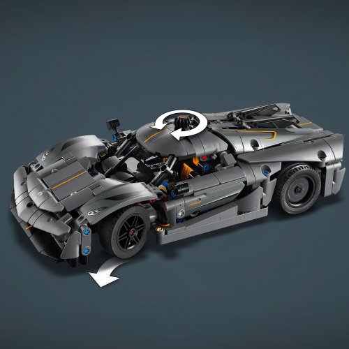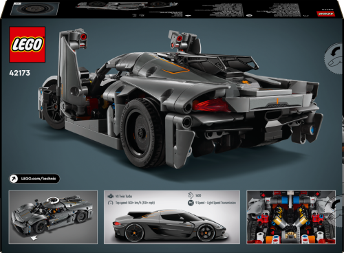 Inšpirujte chlapcov a dievčatá od 10 rokov na zostavenie vlastného luxusného vozidla LEGO® Technic (42173) Šedé hyperauto Koenigsegg Jasko Absolut. Deti, ktoré milujú zostaviteľné modely áut, sa pri zostavovaní všetkých detailov môžu tešiť na obohacujúcu výzvu. A stavanie modelu je ešte len začiatok! Táto stavebnica vzdáva hold jednému z najrýchlejších hyperáut na svete, ktoré smú jazdiť po ceste, a je plná funkcií, ktoré môžu automobiloví nadšenci objavovať. Malí stavitelia môžu pri stavbe pohyblivého motora V8 a diferenciálu preskúmať množstvo technických konceptov. Potom otestujú riadenie pomocou odnímateľného gombíka, ktorý je možné vložiť do prednej časti vozidla. Úchvatnou vychytávkou v tejto stavebnici pre deti je systém synchro-helixových dverí, ktoré sa otvárajú do uhla 90 stupňov smerom von, rovnako ako u skutočného hyperauta. Toto vozidlo LEGO Technic predstavuje skvelý darček pre deti, ktoré milujú autá. Súčasťou je aplikácia LEGO Builder, ktorá staviteľom umožňuje približovať a otáčať modely v 3D. Rozmery – Stavebnica sa skladá z 801 dielikov a model meria cez 8 cm na výšku, 28 cm na dĺžku a 13 cm na šírku