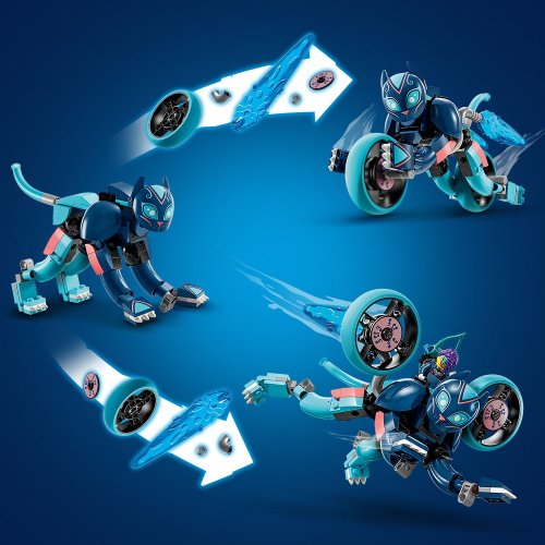 Zapálite iskru detskej predstavivosti so stavebnicou LEGO® DREAMZzz™ (71479) Zoey a jej mačacia motorka. Táto prestaviteľná mačka pre deti je inšpirovaná napínavým televíznym seriálom a chlapci a dievčatá od 7 rokov sa s ňou vydajú do Sveta snov s parádnym vozidlom z kociek LEGO. Krkavec Nikdyčarodejnica ukradol spomienku! Deti sa spoja so Zoey a pomôžu jej spomienku získať späť! Malí stavitelia si vyberú z 2 možností zostavenia – postavia pohyblivú figúrku mačky, ktorú potom premenia na úžasnú mačaciu moto rku s kolesami alebo na rýchlu mačku s turbo posilňovačmi. Mačacia motorka prenasleduje krkavce a mačka s ním bojuje. Táto stavebnica LEGO DREAMZzz zapáli iskru detskej predstavivosti a ožíva vďaka 2 minifigúrkam, vrátane Zoey, ktorú je možné pripevniť na zadnú stranu modelu mačky, a medzi jej doplnkami nájdete strieľajúci lúk. Nechýba tiež návod na stavanie vedený príbehom, vďaka ktorému sa deti stanú hrdinami Sveta snov, prežijú 2 dobrodružstvá a vychutnajú si ešte nápaditejšie hranie s kreatívnou hračkou s mačacou tematikou. Rozmery – Model sa skladá z 226 dielikov av režime mačacej motorky meria cez 11 cm na výšku, 22 cm na dĺžku a 6 cm na šírku
