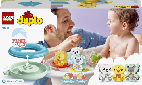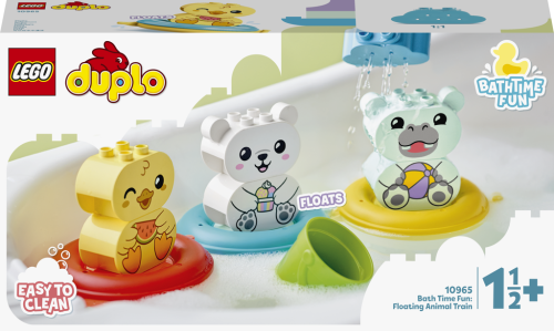 S ľahko umývateľnou stavebnicou Legrace vo vani: Plávajúci vláčik so zvieratkami (10965) z radu LEGO® DUPLO® Moji prví si predškoláci od 18 mesiacov užijú hranie i rozvoj zručností.