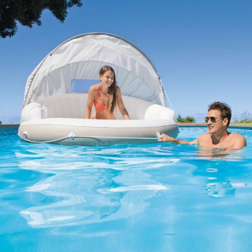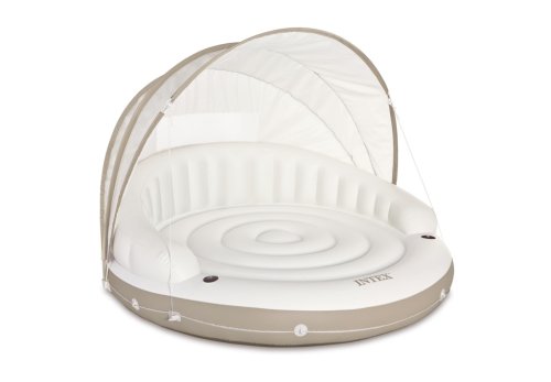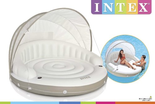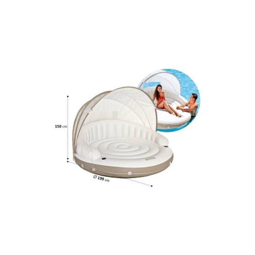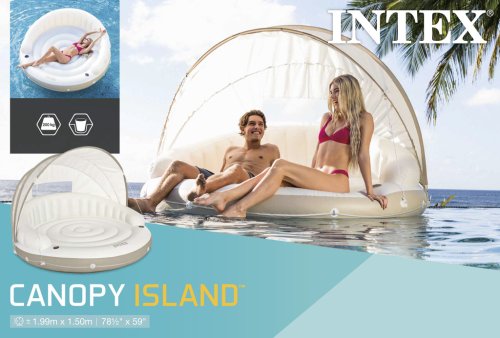 S Intex Canopy Island sa budete cítiť ako v päťhviezdičkovom rezorte. Nastaviteľná strieška vám poskytne príjemný tieň na čítanie alebo odpočinok, zatiaľ čo ju môžete kedykoľvek úplne odňať, ak sa rozhodnete pre slnenie. Vďaka vysokej nosnosti 200 kg a stabilnému kruhovému tvaru je ostrov ideálny pre dlhé hodiny relaxácie. Praktické držiaky zaistia, že váš obľúbený drink zostane vždy vo zvislej polohe a po ruke.