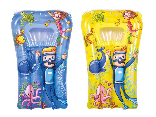 Lehátko mini nafukovacie 67 x 43 cm, mix farieb. rozmery: 67 x 43 cm mix farieb: žltá, modrá Minilehátko s okienkom je určené k letným hrám vo vode.