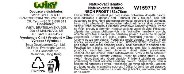 Neónové nafukovacie lehátko bude skvelým doplnkom na horúce letné dni pri bazéne. Údržba je veľmi jednoduchá, po vyfúknutí nezaberá veľa miesta. Vinyl s hrúbkou 0,20 mm zaisťuje pevnosť a príjemný komfort pri ležaní. Maximálna nosnosť je 100 kg. Rozmer 183x76 cm.