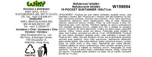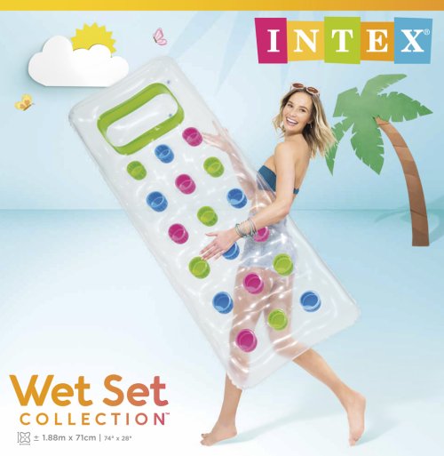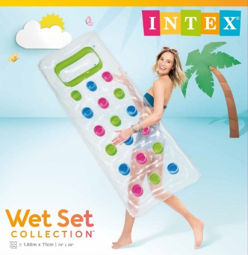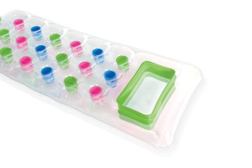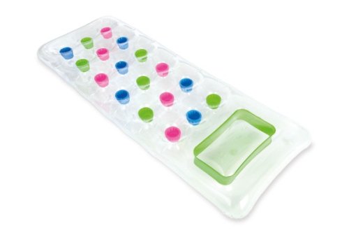 S opaľovacím nafukovacím lehátkom na vodu s podhlavníkom si skvele užijete horúce letné dni v bazéne aj na mori. Súčasťou balenia je opravná sada. Maximálna nosnosť 100 kg. Je vyrobené z pevného transparentného vinylu (0,28mm), ktorý vám pri opaľovaní umožní sledovať dianie pod vodnou hladinou. 2 nafukovacie komory. Rozmery 188 x 71 cm.
