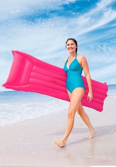 Nafukovacie lehátko s nafukovacím vankúšikom o rozmere 183 x 69 cm. K dispozícii vo farbe ružovej.