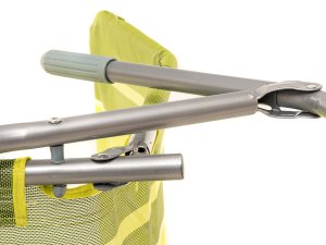 rozmery: 142 x 60 x 96 cm materiál: kovová konštrukcia, textil, plastové doplnky farba: zelená dekor: pruhy nosnosť: 100 kg