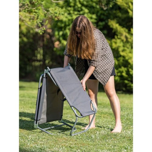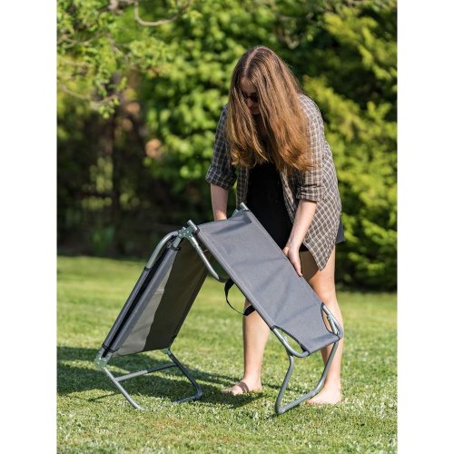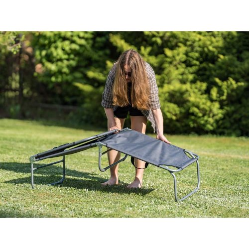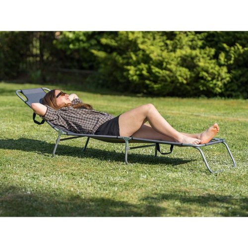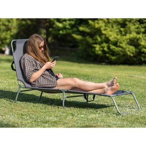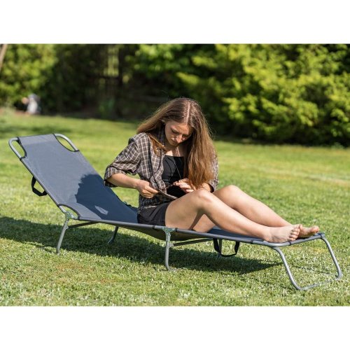 Plážové lehátko SUNBAY je vhodné na relaxáciu na záhrade, chate alebo pri bazéne. Lehátko má striebornú kovovú konštrukciu, výplň 600D oxford a výškovo nastaviteľný sklon operadla a podnožky.