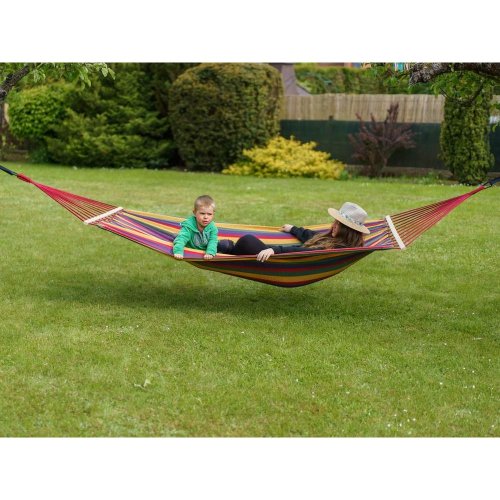 Lehátko závesné hojdacie 200 x 150 cm, červenéZávesné hojdacie lehátko je vhodné na relaxáciu najmä na záhrade. Veľkosť látkového lôžka je 150 x 200 cm s drevenými vzperami. Lehátko je vyrobené z bavlny a polyesteru. Nosnosť: 100 kg. Dĺžka (cm): 280 | Šírka (cm): 150 | Materiál: Bavlna / PES | Farba: Červená | Nosnosť (kg): 100 | Hmotnosť netto (kg): 2,46 | Hmotnosť brutto (kg): 2,46 | Záruka (v mesiacoch): 24 mesiacov | Výrobca / značka: HAPPY GREEN