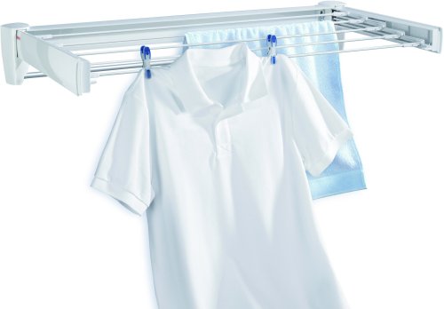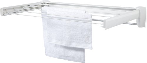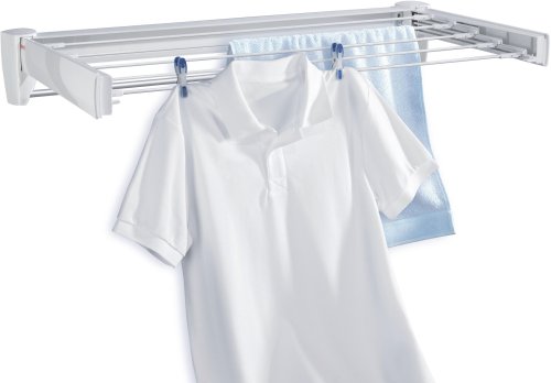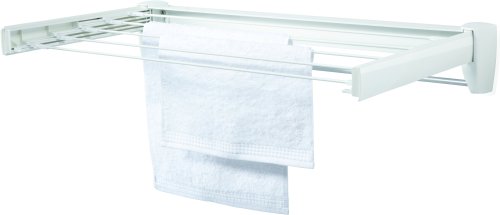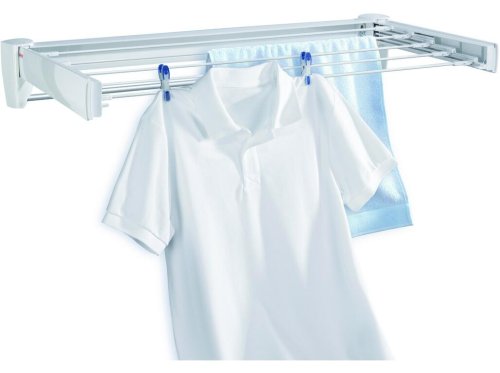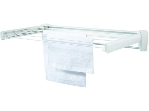praktický skladací nástenný sušiak na bielizeň, šetrí miesto, vhodný nielen do kúpeľne, samostatný chrómovaný vešiak na osušky, šírka tyčí 70 cm, 3,6 m sušiacej plochy