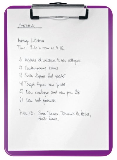 Vysoko kvalitný tvrdý plast (polystyrol) s lesklým povrchom v žiarivých WOW farbách. Ideálne pre zabezpečenie papierov na cestách alebo počas prezentácií a prejavov.