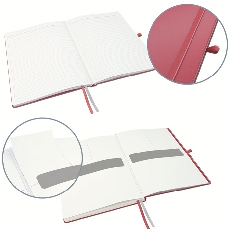 Vnútorné vrecko s rozšíriteľnou kapacitou na prednej a zadnej strane zápisníka na uloženie voľných papierov a ďalších drobností