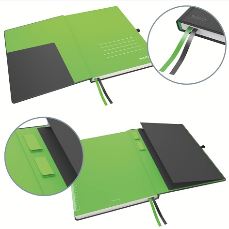 Prémiový zápisník v preslávenej kvalite značky Leitz. Moderný dizajn pre každodenné vyhotovovanie poznámok. Atraktívny kožený vzhľad (syntetická koža), je príjemný na dotyk. Inovatívne prvky zaistia optimálnu organizáciu Vašich poznámok. Dokonale dopĺňa ostatné výrobky z radu Leitz Complete.