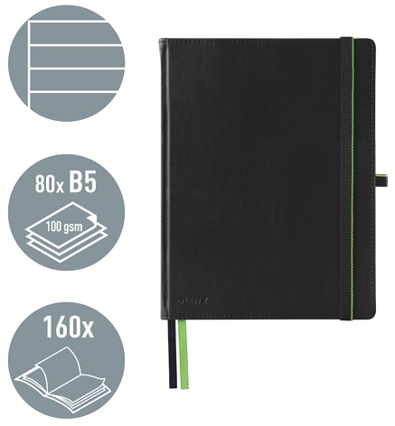 Prémiový zápisník v preslávenej kvalite značky Leitz. Moderný dizajn pre každodenné vyhotovovanie poznámok. Atraktívny kožený vzhľad (syntetická koža), je príjemný na dotyk. Inovatívne prvky zaistia optimálnu organizáciu Vašich poznámok. Dokonale dopĺňa ostatné výrobky z radu Leitz Complete.