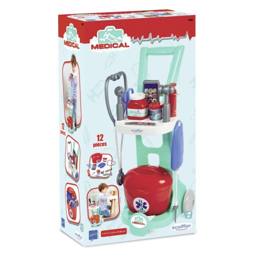 Vozík pre malých lekárov zahŕňa lekársky kufrík, stetoskop, infúziu a ďalšie príslušenstvo - striekačku, teplomer, nožnice atď. na zistenie zdravotného stavu pacienta. Výška vozíka je 56 cm. Hmotnosť 1,085 kg.