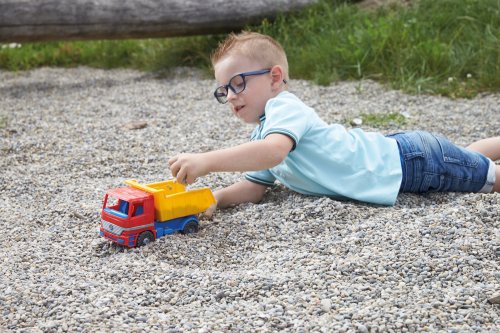 Malé nákladné plastové auto Mercedes Benz so sklápacou korbou. Hračka je plne mechanicky funkčná a má realistický vzhľad. Rozmer 23 cm. Vhodné od 2 rokov.