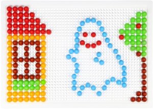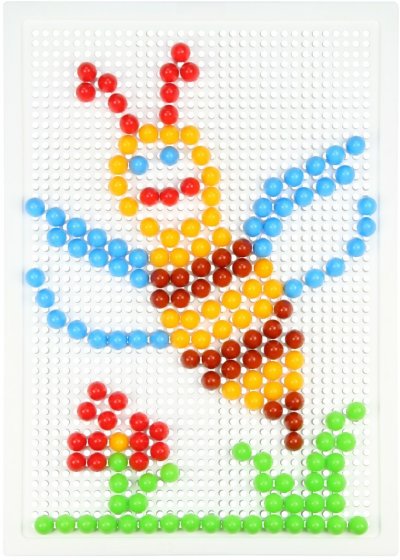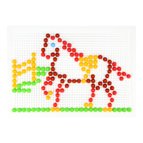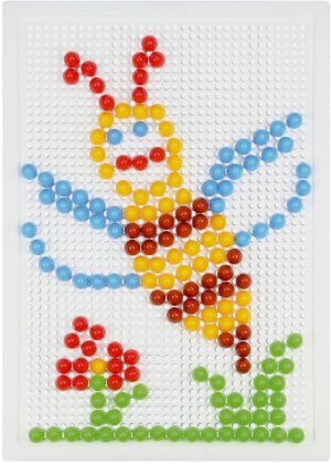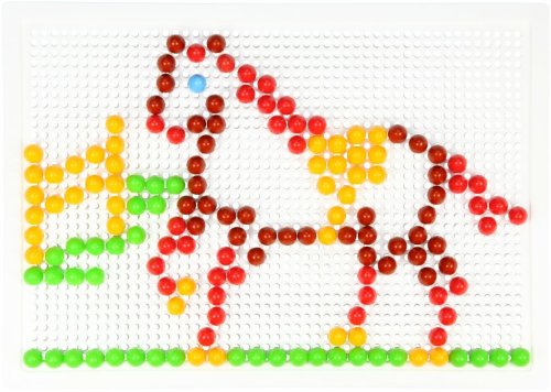 Skladaj a vytváraj svoj vlastný svet plný krásnych obrázkov do mriežkovanej podložky. Poskladaj si koňa alebo si vytvor napríklad papagája. Je to len na tebe. Tvor znova a znova vďaka 200 kusom plastových hlavičiek s priemerom 1 cm, ktoré na doske umiestniš presne na miesto, kam sa ti bude hodiť! Rozmer krabice: 33 x 24 x 3,5 cm Vhodné pre deti od 3 rokov