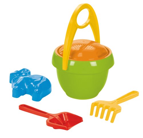 Základná sada pre hranie na pieskovisku vo farbách, ktoré sa budú páčiť chalanom aj dievčatám. Obsahuje väčší kýblik ø21 cm víkovaný sitkom, dva kusy náradia zodpovedajúce veľkosti a formičku. Kýblik je vybavený robustným uchom slúžiacim na pohodlné prenášanie. Hlavné vlastnosti: kýblik so sitkom, hrabličky, lopatka a formičkarobustné ucho na prenášanie