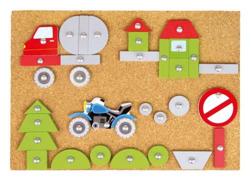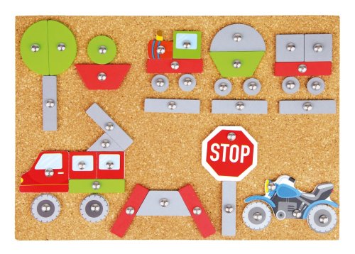 Tvorivá zábava nikdy nekončí. S týmto kladivkom, dielikmi a korkovou doskou môžete vytvoriť rôzne druhy dopravných prostriedkov. Sada obsahuje: 48 farebných dielikov, 16 potlačených špeciálnych dielov, kladivo a klince a korkovú dosku: 27 x 20,5 cm. Hlavné vlastnosti: podporuje kreativitu a koncentráciu podporuje jemnú motoriku