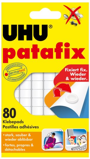 Samolepiaca snímateľná guma s možnosťou tvarovania Opakovane použiteľné lepidlo na rýchle a čisté lepenie Umožňuje pripevniť malé predmety prakticky na všetky povrchy (steny, nábytok, zrkadlá,…) Použitie …