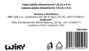 Štandardná penová obojstranne lepiaca páska v bielej farbe. • Rozmery: šírka 18 mm, hrúbka 1 mm, návin 4 m.