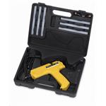 Veľkou prednosťou tohto modelu je prítomnosť praktického nahrievacieho stojanu, ktorý tiež slúži ako dokovacia stanica. Najviac však oceníte možnosť vybrať si napájanie cez prívodný kábel alebo pomocou akumulátora, čo rozšíri vašu flexibilitu. Okrem 6 lepiacich tyčiniek nájdete v balení aj 2 praktické trysky s guľatou hlavou . Súčasťou dodávky je aj špeciálna tryska používaná na presné nanášanie malého množstva lepidla na menej prístupné miesta . Všetko je zabalené v praktickom kufríku s celkovou hmotnosťou 1,28 kg.