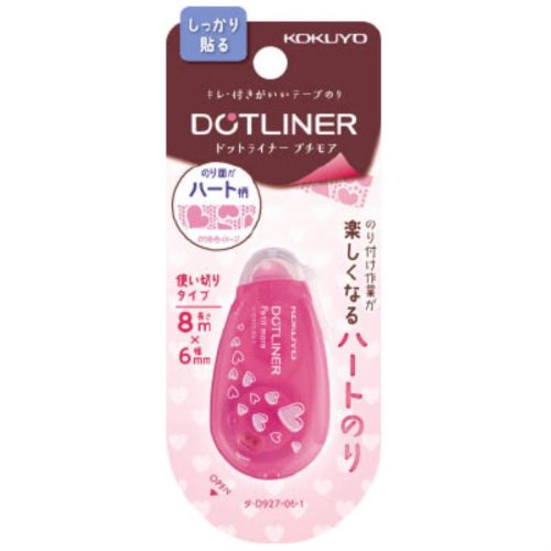 Lepiaca permanentná páska s lepiacimi bodmi v tvare srdiečok v ružovom strojčeku Vrecková veľkosť, vhodná do peračníka Rozmery strojčeka: 5,5 x 2,5 x 1 cm Nová generácia lepenia papiera KOKUYO DOTLINER Petit more …