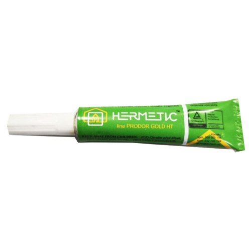 Žiaruvzdorné lepidlo HERMETIC na lepenie tesniacich šnúr do dvierok kachlí a sporákov.
